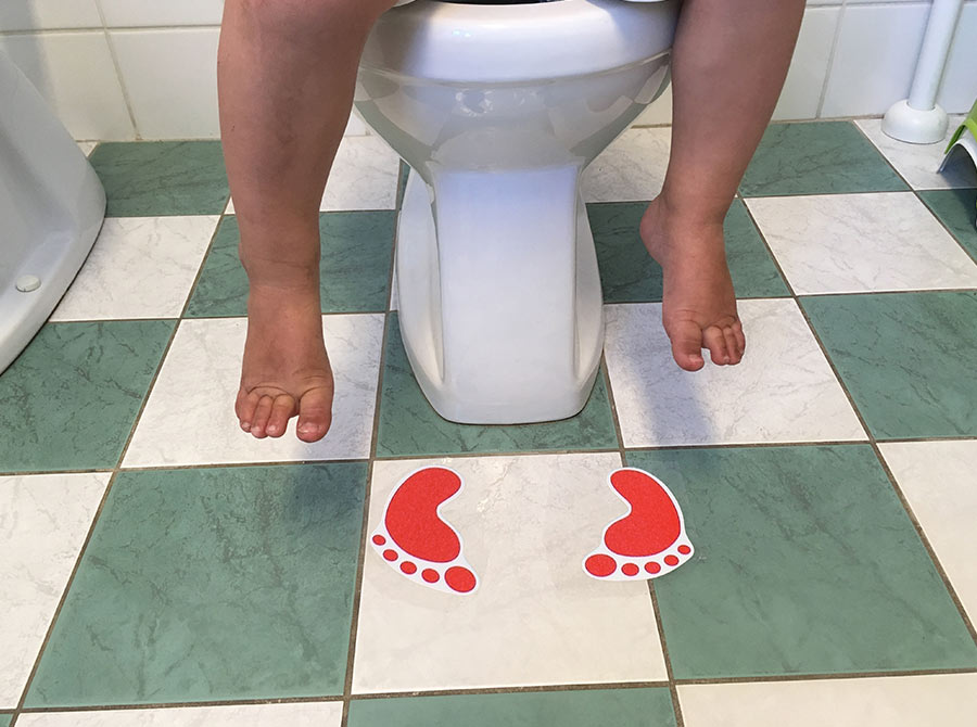 • Encourages children to sit on the toilet seat properly and keeps bathroom cleaner